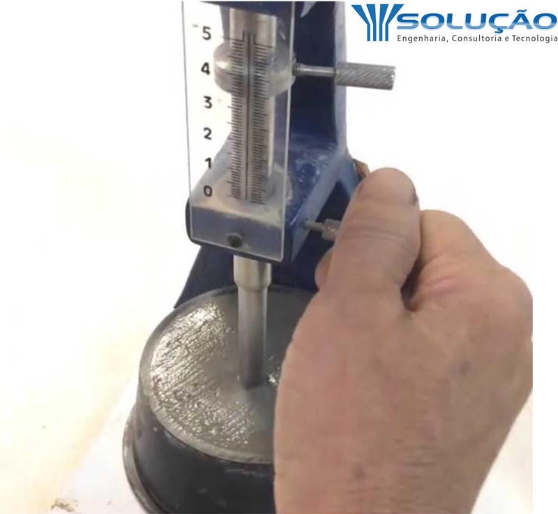 Este ensaio permite estipular a quantidade de água ideal para uma determinada quantidade de cimento, a chamada relação a/c.
