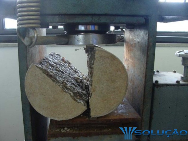 Este ensaio mede a resistência à tração simples do concreto, baseando-se no princípio de que um cilindro, carregado diametralmente, recebe tensões de tração, além das de compressão; sendo a resistência à tração do concreto numericamente bem menor que a de compressão, ele rompe por tração.