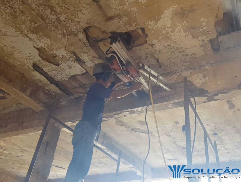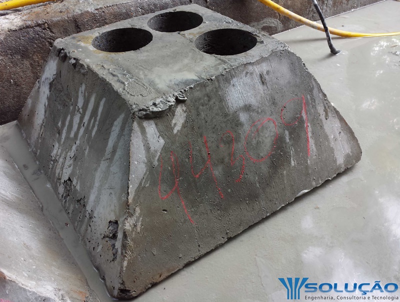 Este ensaio normalmente é requisitado quando ocorre resistência abaixo fck de projeto estabelecido pelo calculista das estruturas nas obras ou em fabrica de pré-moldadas em geral. Sendo realizado com critério é confiável, porém, destrói parte da estrutura devido aos furos necessários para extração dos corpos-de-prova.