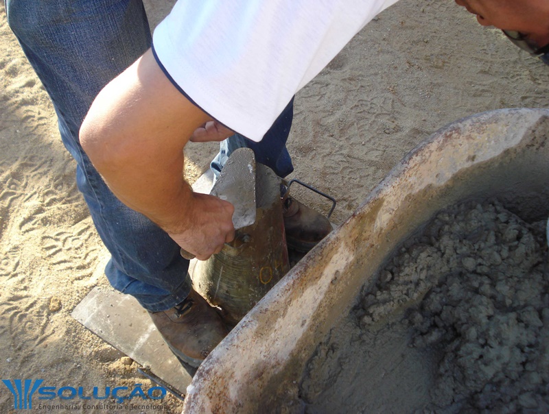 Este ensaio é realizado no ato de entrega do concreto no canteiro de obras, e tem como objetivo verificar a uniformidade do abatimento entre uma remessa e outra do concreto. Aplica-se aos concretos cuja consistência seja plástica, com abatimento igual ou superior a 10 mm. O fato de requerer equipamentos simples e de fácil transporte torna-o prático para aplicação de canteiros de obras.