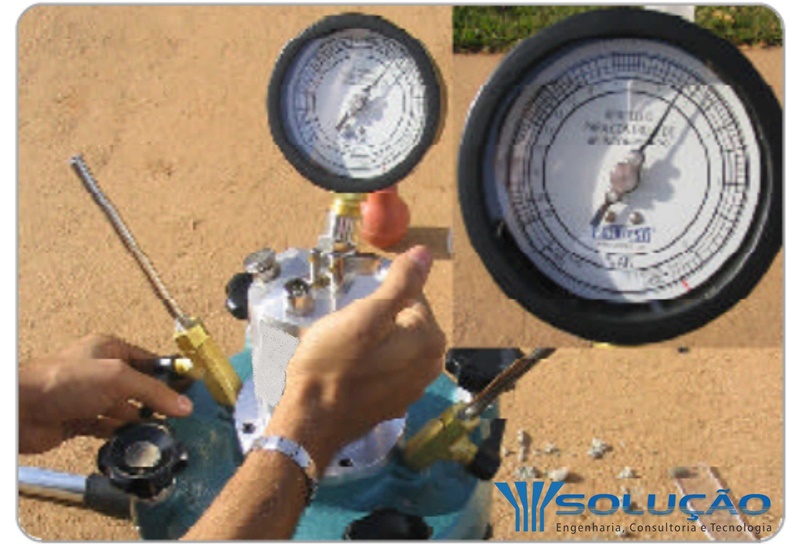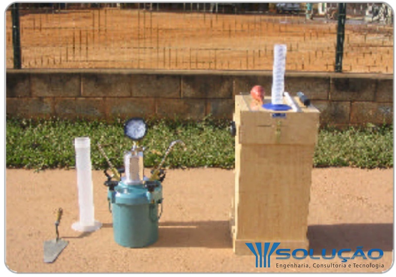 Permite determinar o teor de ar em concreto fresco a partir da mudança do volume do concreto devido a uma mudança de pressão, percentuais acima de 5% podem trazer prejuízos ao desempenho mecânico do material.